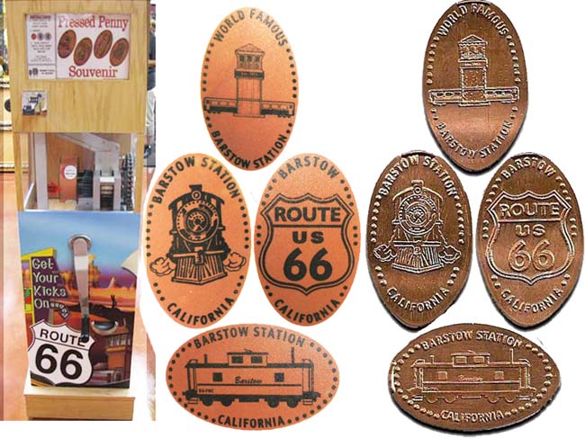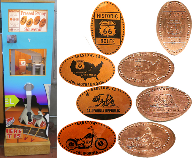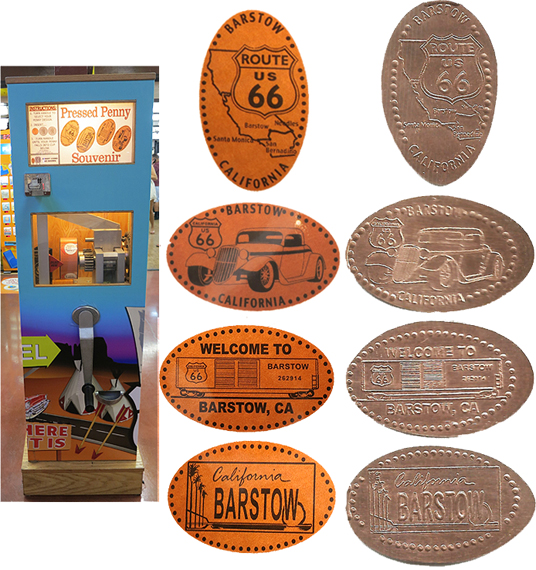 11 miles away at Calico Ghost Town there are also penny machines but admission to the park is required to get to the machines. Cost is $8.00 per person.