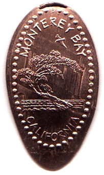 There is no "dot" under lower right-hand branch in this design. That makes it different from the Retired very similar Lone Cypress design that was in front of the Ocean Front store on Fisherman's Wharf. |