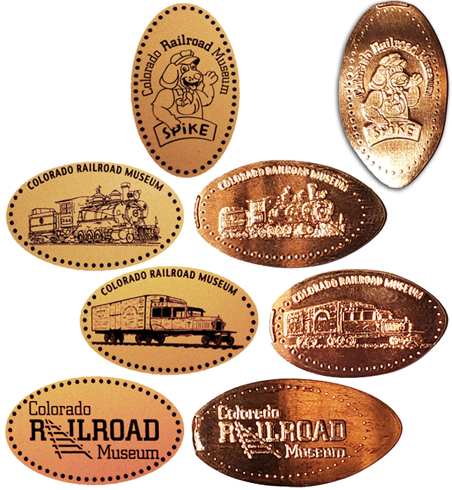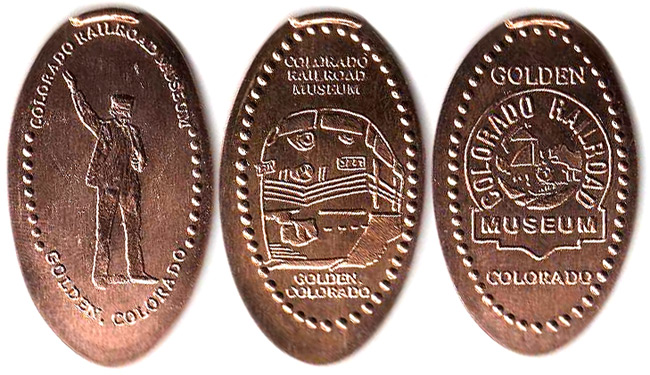 Retired 1 designs are: 1) "Colorado Railroad Museum Golden, Colorado" a conductor, 2) "Colorado Railroad Museum Golden, Colorado" a modern train engine, 3) "Golden Colorado" "Colorado Railroad Museum" logo.