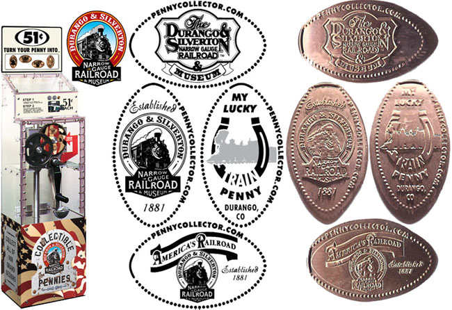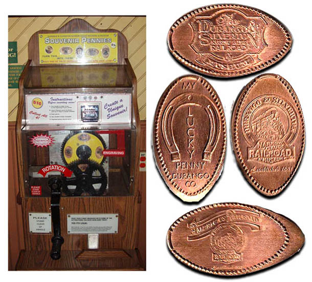 The penny machine is Located in same area as ticket sales and gift shop near both entrances. Designs all have a PennyCollector.com beaded border.