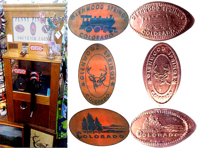 Three penny designs from a Coin Crafters "Penny Pincher" hand cranked machine. Each cost 50 cents (two quarters only) on a penny that you supply.