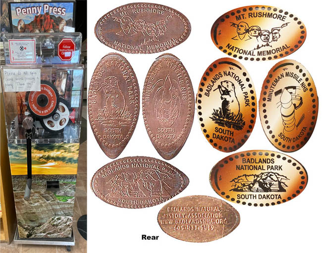 Hours of operation: Monday through Sunday 9:00 am to 5:00 pm. Winter Hours Monday through Sunday September 26 to March 30. A South Dakota Pennybook for $4.99, Collectible Token album for $5.50, mini-tokens for $1.25 each and pennypalz magnets and keychains for $6.95 each are for are for sale in the gift shop. Plenty of free parking.