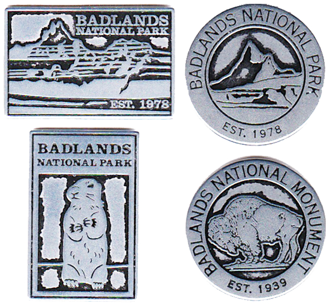 2) Front- Badlands butte with 'Badlands National Park Est. 1978'/ Rear- Prairie dog with Badlands National Park'.