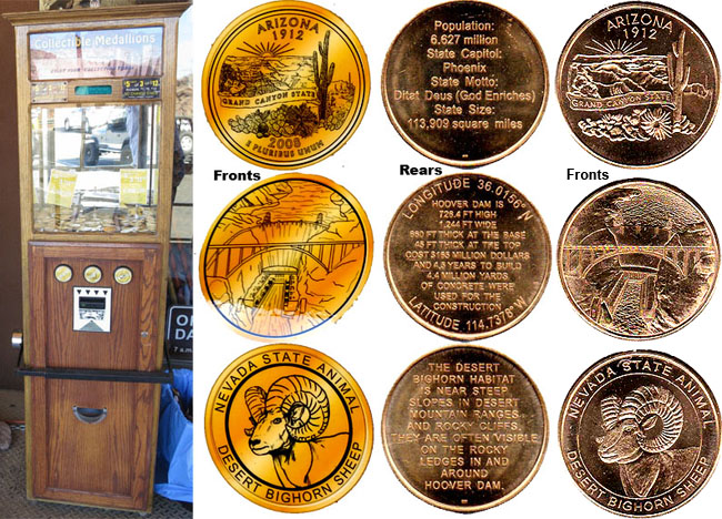 Retired Token Machine 2: 1) Big Horn Sheep, 2) The Hoover Dam, 3) Arizona 1912-2008 Grand Canyon State.
