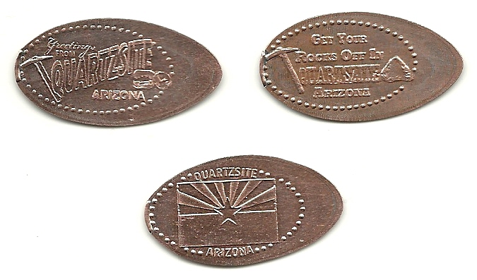 Designs were: 1) Arizona Flag 2) Greetings From Quartzsite 3) Get Your Rocks Off in Quartzsite