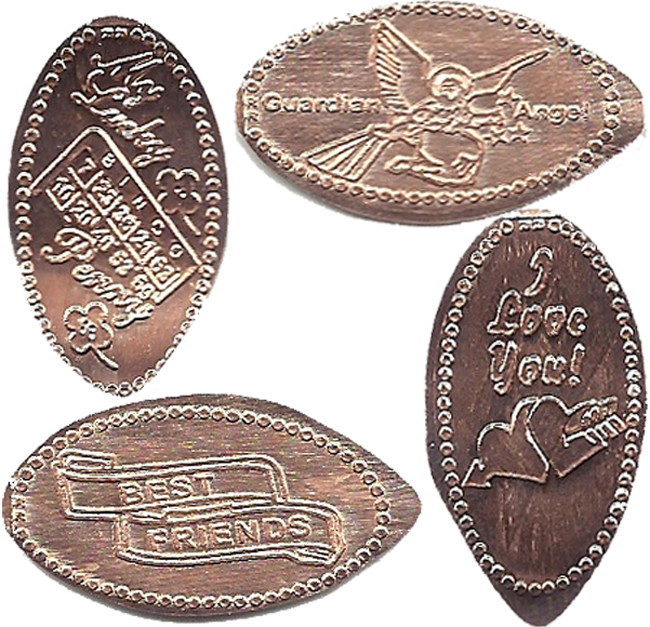 Generic Designs were: 1) I Love You 2) Guardian Angel 3) Best Friends 4) My Lucky Penny
