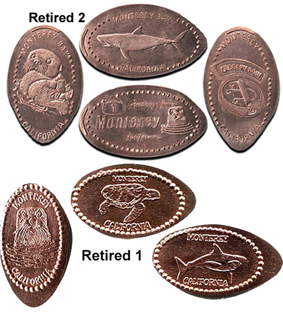 Retired 2 (from Sea Otter Shirts on Cannery Row): 1) Otter, 2) Open Sardine Can, 3) Shark, 4) 'Greetings From Monterey, California'