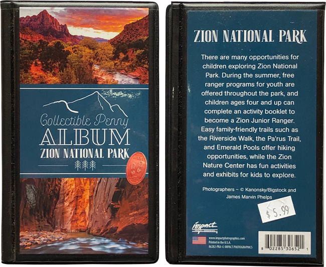 Hours of operation: Seasonal variance, check the website. Second edition United States PennyCollector books are on sale in the gift shop for $4.99 (plus tax) and Zion penny books for $5.99 (plus tax).