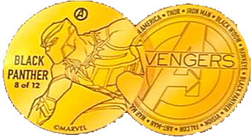 2) 'Black Panther 8 pf 12',/ Rear- 'Avengers', logo with their names around the outside
