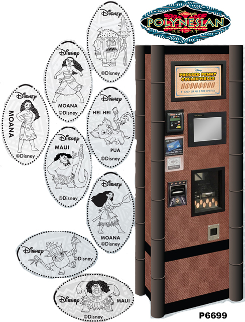 Machine 4: 8-die penny press with Moana designs at Pineapple Lanai, Designs are: