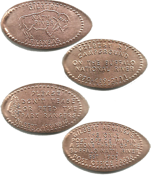 36 Frost St P. O. BOX 69 Gilbert, AR , 72636 Phone: 870-439-2111 Website The machines are located in the office of the campground store. Designs of the Buffalo National River.