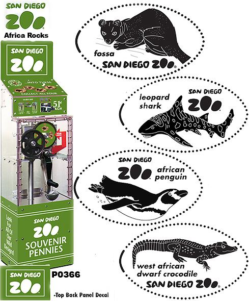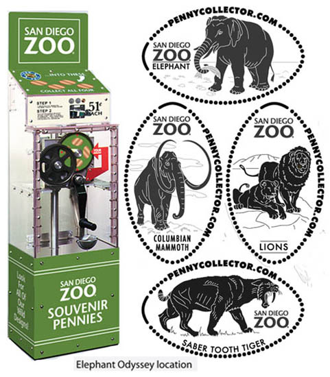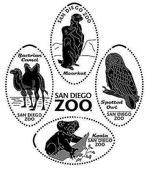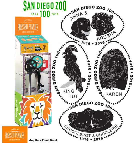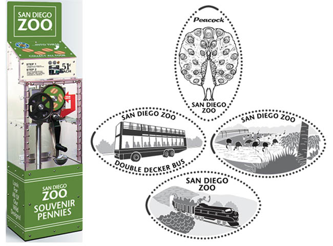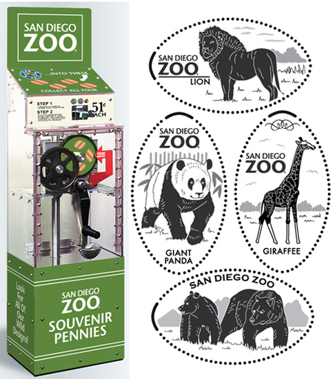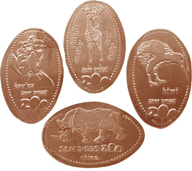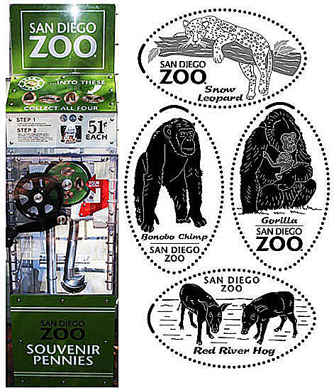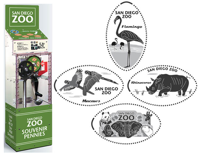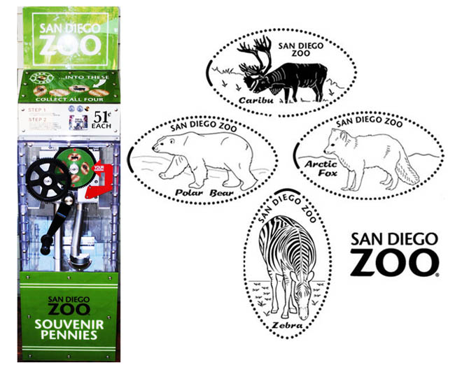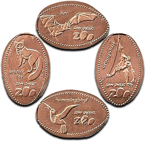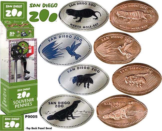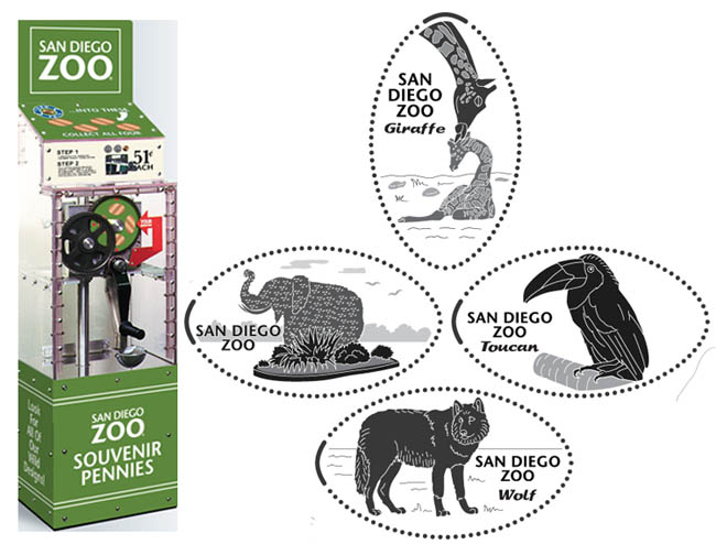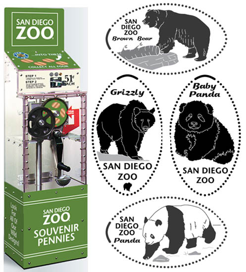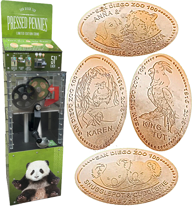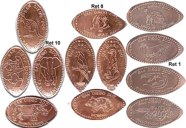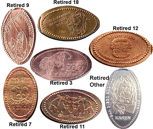 Other Retired: A) Celebr80, B) Polar Bear Plunge (quarter and penny), C) Sydney Koala, D) Hippo Beach, E) Flamingo Lagoon, F) Hua Mei (Panda - the first panda born at the zoo. She was sent to China several years ago and the machine retired.)