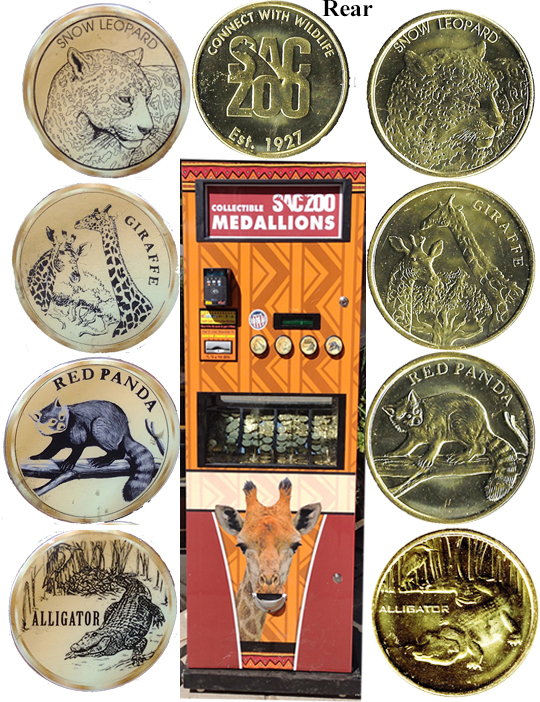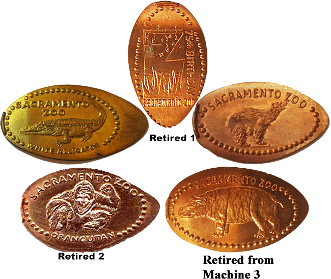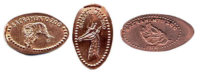 Retired 3: 1) 'Sacramento Zoo', Giraffe head, 2) 'Sacramento Zoo', Tiger, 3) 'Sacramento Zoo', Frog.