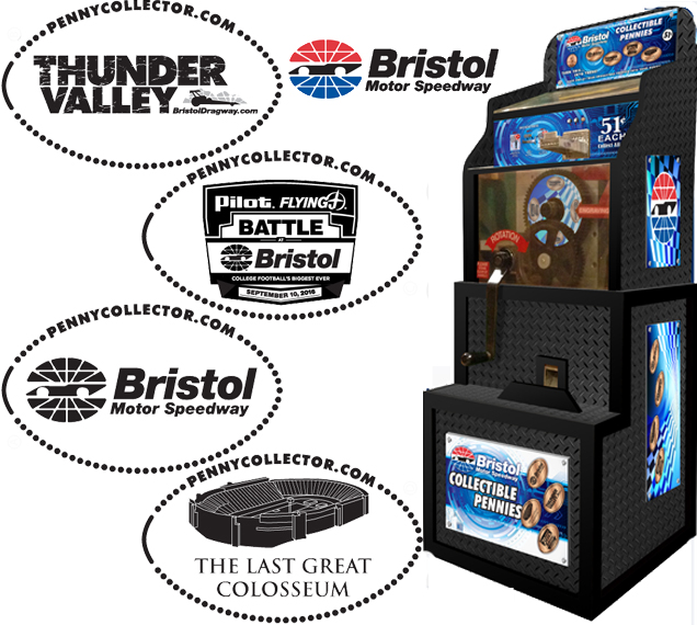 151 Speedway Blvd Bristol, TN , 37620 Phone: 423-764-6555 Website The machine is to the left of the main entrance of the gift shop which is a Bright white building near speedway. The building is marked "Bruton Smith Building".