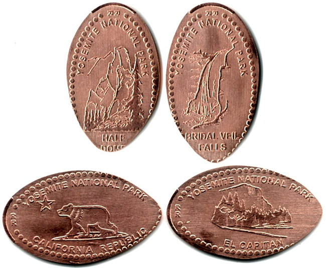 Retired 1: 1) Bridal Veil Falls, 2) California Republic Bear, 3) El Capitan, 4) Half Dome |