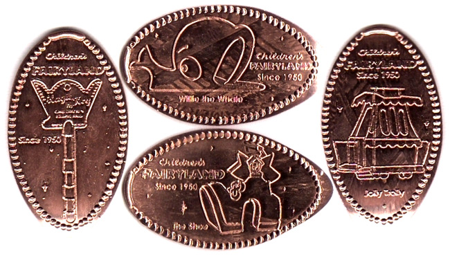 699 Bellevue Ave. Oakland, CA , 94610 Phone: 510-452-2259 Website Children's Fairyland is a 10-acre storybook theme park for young children in the heart of downtown Oakland, right next to Lake Merritt. Walt Disney himself visited Fairyland in 1954 and incorporated ideas he saw there to build his "magic kingdom" in 1955. Please note: No adult admitted to Fairyland without a child, no child without an adult. To get this pressed penny, you'll need to bring along a small child or wait until the park hosts one of its special grownups-only events. Closed on Monday and Tuesday, except in the summertime when it's open seven days a week.