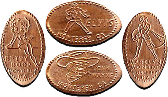 Retired #2 (2012): 1) "Betty Boop" sitting on a ledge with her legs crossed hanging down/ (V), 2) "Elvis" standing with his legs apart playing a guitar/ (H), 3) "Marilyn Monroe" in classic pose holding her dress down as it is being blown up/ (V), 4) "John Wayne" head wearing a scarf on his neck and a cowboy hat/ (H)