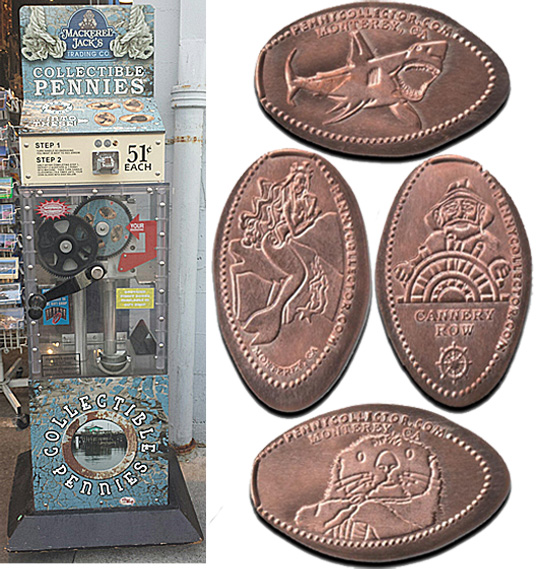The machine sits right outside the front door of this store which also sells 3 Pennycollector books. This is a new machine with built-in dollar bill coin changer, but the same designs.