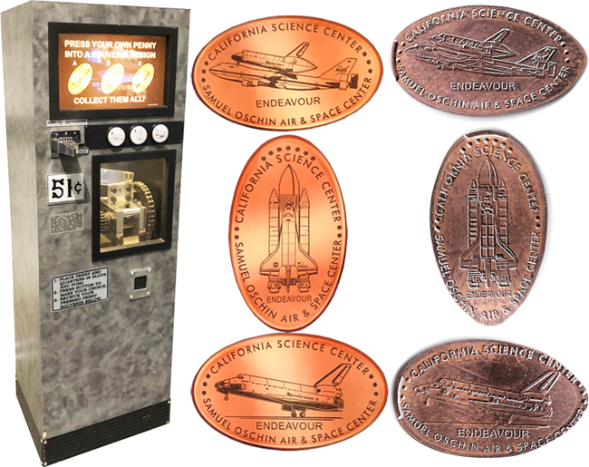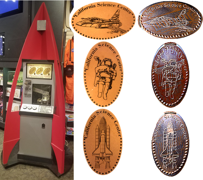 Machine 4: (2025) downstairs in the main souvenir shop, at the entrance. All have 'California Science Center' on them. Designs are;