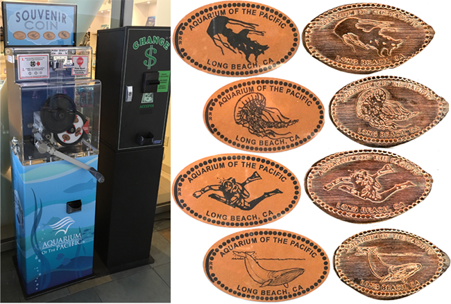 12/21/24: Three machines working by gift shop. $1 per smashed coin. Change machine gives you one free penny for each transaction and accepts $1, $5, $10 bills. Gift shop good at giving change.