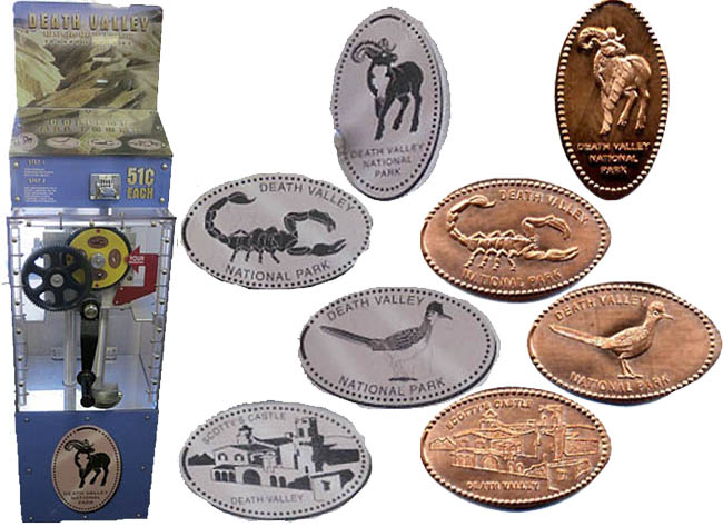 The penny machine is located to the left at the far side of the shop after entry into the visitors center. The visitors center is open daily 9:45 am to 3:45 pm. Plenty of free parking. You do not have to pay for a tour to access the machine, although the tours are HIGHLY recommended. Visit the website for times and prices for tours. The entrance fee into Death Valley National Park is $10 for 7 days for an individual and $20 per carload for 7 days. There is no entrance fee into the National Parks on January 19: Martin Luther King Jr. Day, February 14-16: Presidents Day weekend, April 18-19: opening weekend of National Park Week, August 25: National Park Service Birthday, September 26: National Public Lands Day, and November 11: Veterans Day.