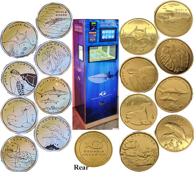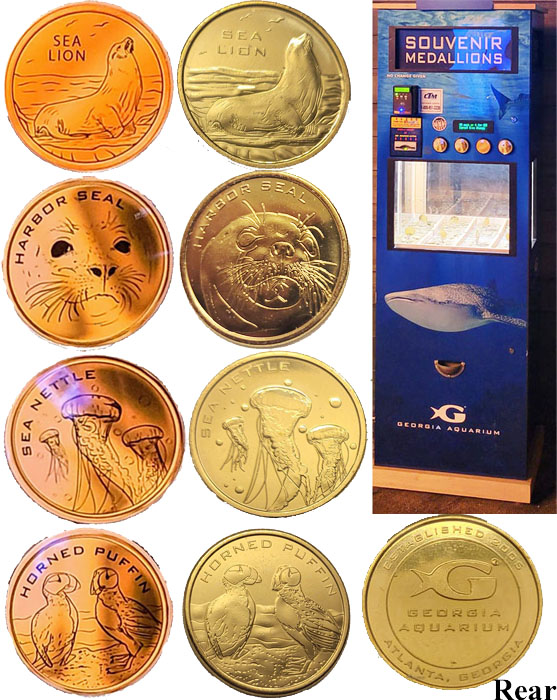 Medallion Machine #2: Sea Lion Theater & Arcade. Designs are: