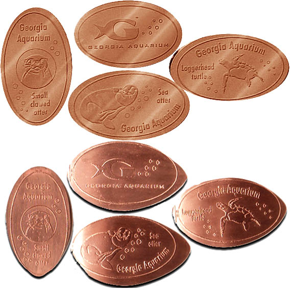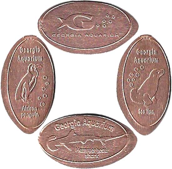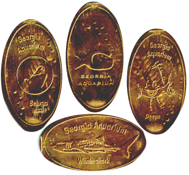 Retired 2: 1) (V) Beluga Whale, 2) (V) Deepo--the GA Aquarium mascot, 3) (H) Whale Shark), 4) (V) Aquarium Fish Logo