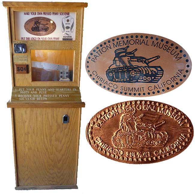 Machine 1 is in the gift shop. Cost to press: 51¢ each design. The design has a beaded border:
