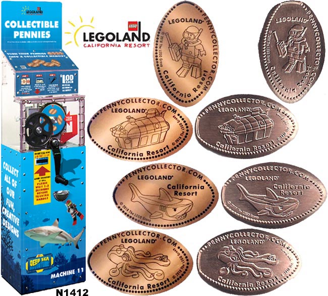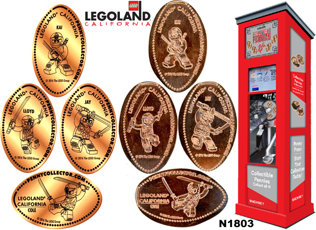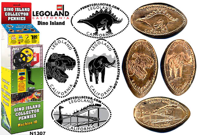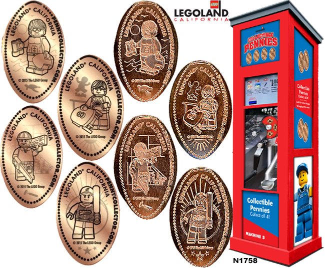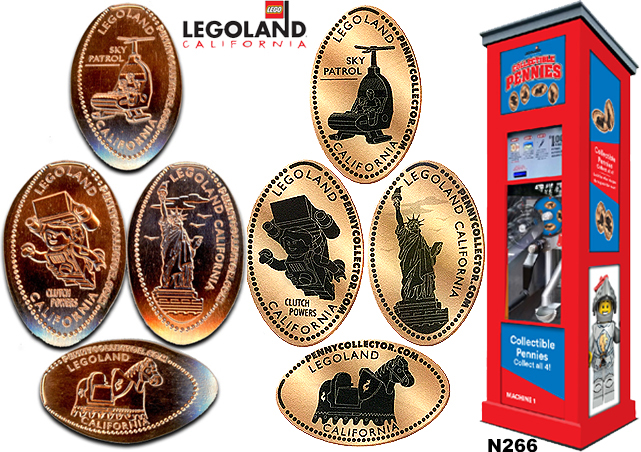 Retired 1 - 2010: 1) (V) Buddy driving crane carrying hippo in sling, "LEGOLAND CALIFORNIA", 2) (V) Lego seal balancing 2 Legos on nose, "LEGOLAND CALIFORNIA", 3) (V) Buddy waving, flying Lego helicopter, "LEGOLAND CALIFORNIA", 4) (V) Buddy in caveman outfit, riding Lego dinosaur, "LEGOLAND CALIFORNIA"