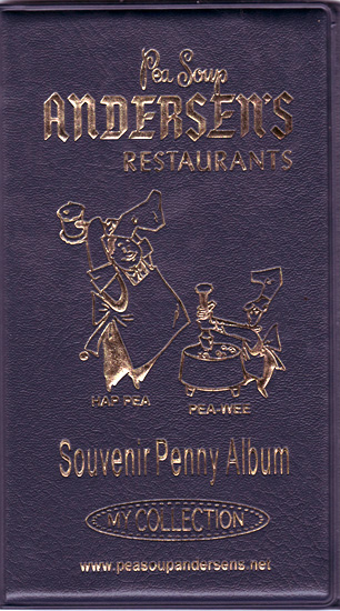 The Pea Soup Andersen's penny book is for sale in the gift shop for $6.50 plus tax.