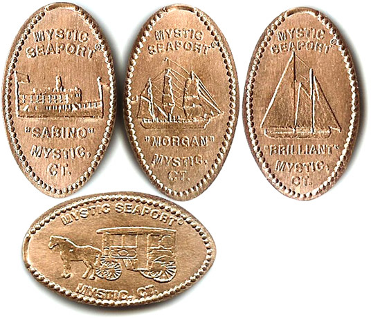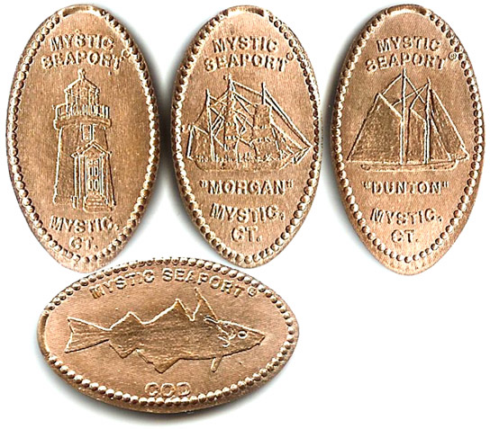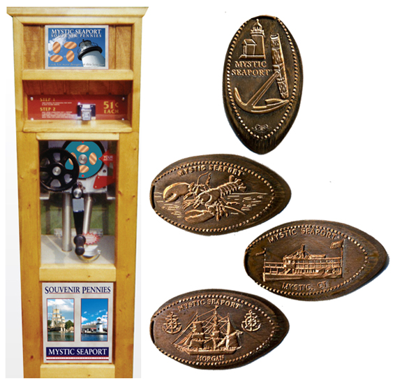 Machine 3: is located outside of the Mystic Seaport Museum giftshop "Seaport Stores," which is a separate building down the road from the Mystic Seaport Museum itself. Address for that is 47 Greenmanville Ave, Mystic, CT 06355 and comes up at Mystic Seaport Bookstore. The Machine is located outside to the left of the door to the shop, and you don't have to pay admission to access it. The South museum entrance is closest.