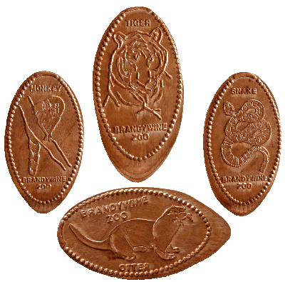 Retired 1: all said "BRANDYWINE ZOO" 1) Tiger, 2) Snake, 3) Monkey, 4) Otter.