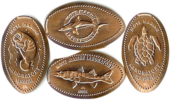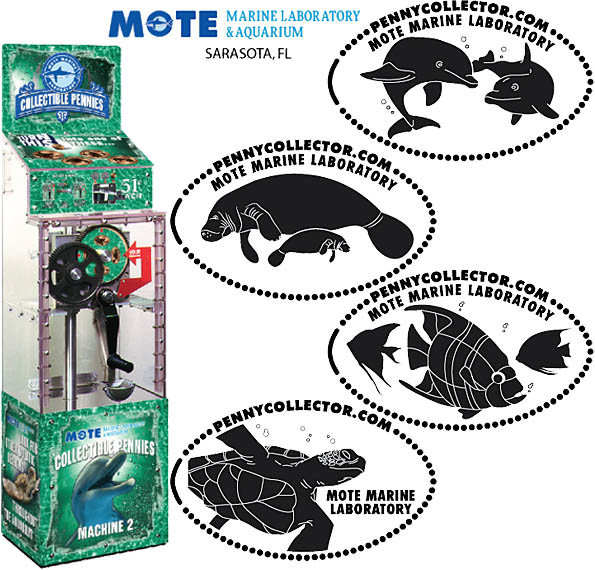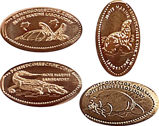 Retired 2: 1) Manatee, 2) Snook, 3) 'Mote Marine Rescue Center', shark logo, 4) Sea Turtle,