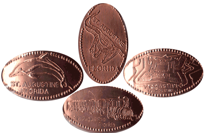 Designs were: 1) Sightseeing Train (h); 2) Alligator(v); 3) Dolphin (h); and 4) Fort Castillo (h). |