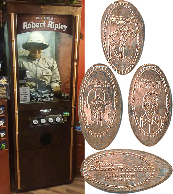 Retired 2: (2018/ Robert Ripley machine) designs were: 1) Two headed calf, 2) Shrunken head, 3) Man with bottom lip over nose, 4) Logo.