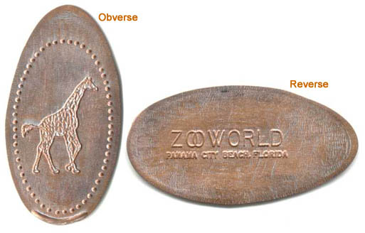 1) Front is a Giraffe and the reverse, says "Zoo World Panama City Beach, Florida".