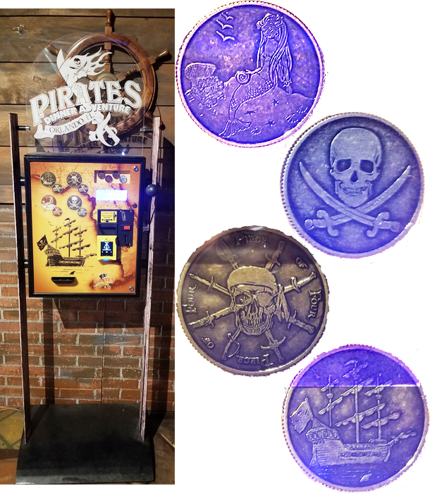Machine 2 all have 'Pirate's Dinner Adventure Orlando FL'. Designs are