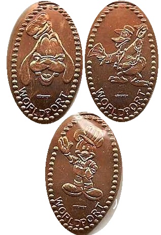 03/24/06: Store is gone, did have a 3 die machine with images of Mickey with engineer's cap, Donald with pocketwatch and Goofy's face. All designs said WORLDPORT on them.