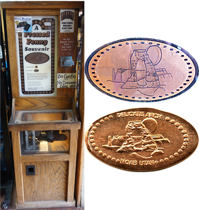 Machine 1 is inside to the right after entry. Cost to press: 51¢ each design. Design has a beaded border :