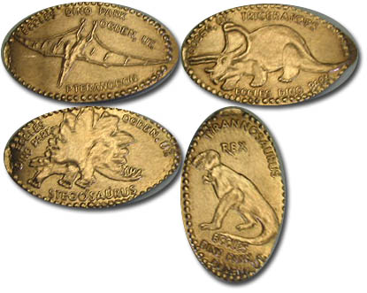 Retired 2: 1) Triceratops skeleton, 2) Brontosaurus Skeleton, 3) T-Rex skeleton, 4) Dino bug.