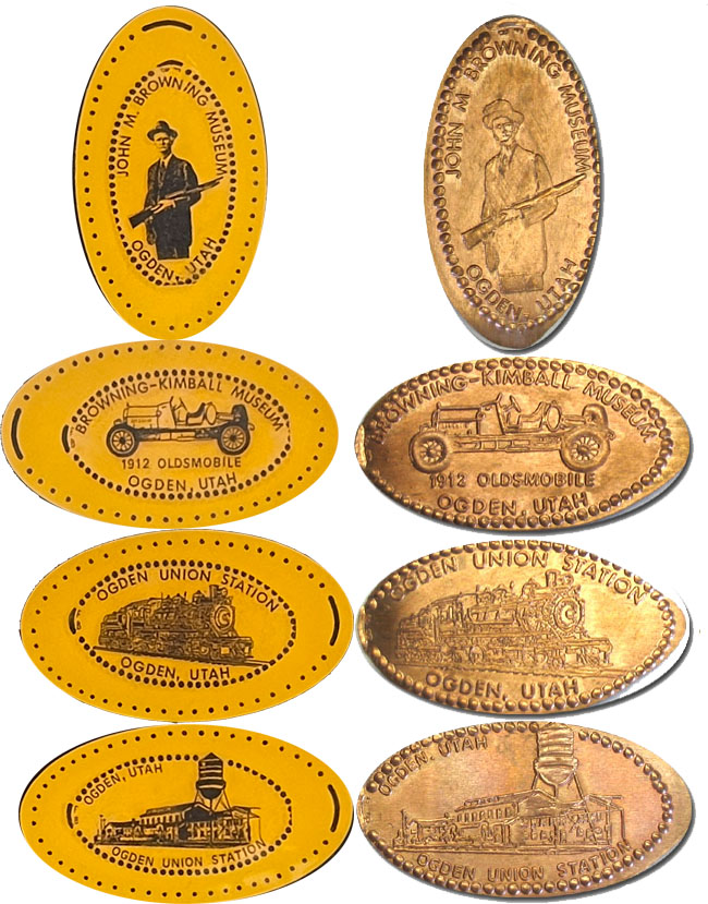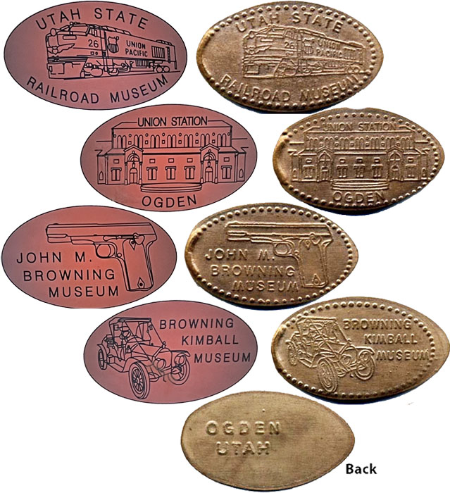 Machine 2 has 4 designs. All designs are double sided and read "Ogden Utah" on the reverse. Designs are: