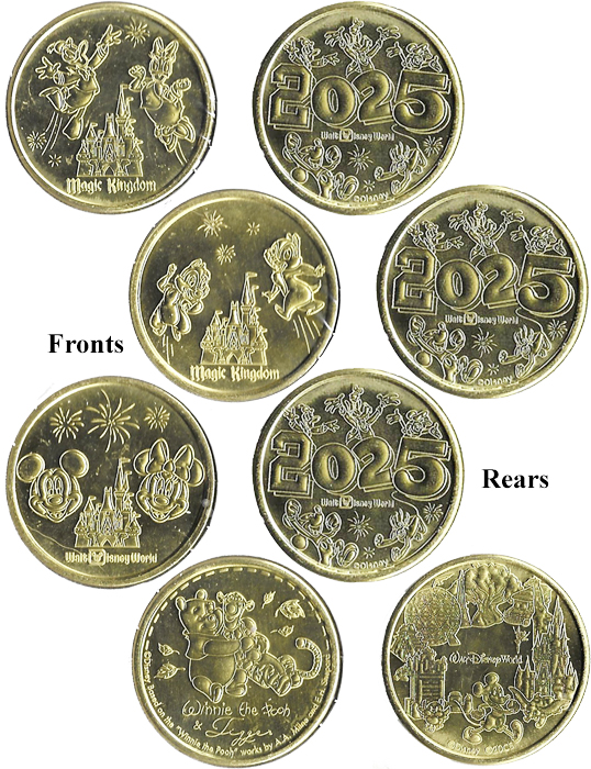 Rear of all Designs 1, 2 and 3 '2025 Walt Disney World', Disney Characters around outside with date over park in the middle.