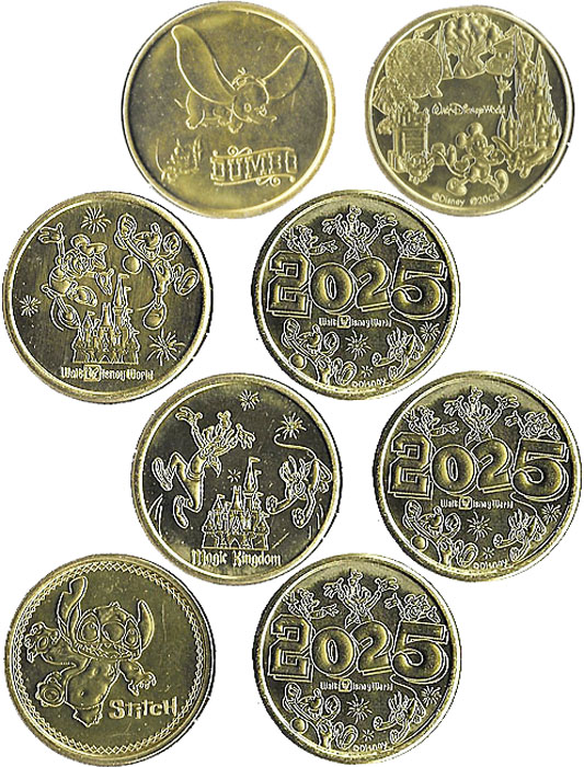 Retired Medallion Machine 1: 1) Timothy Q Mouse, 2) Gus Gus, 3) Olaf, 4) Cheshire Cat.