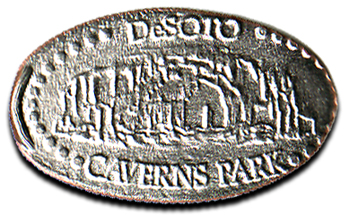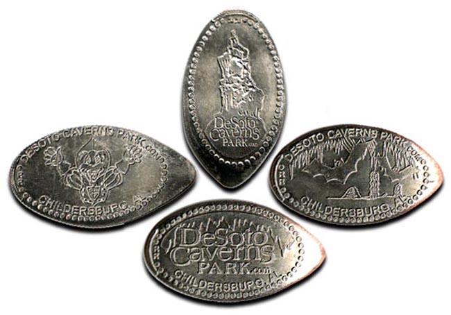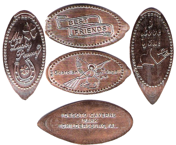 Machine 1 is a dime smasher (Desoto Caverns Park design and verbiage) which is a mule. Is in the gift shop. Design is: