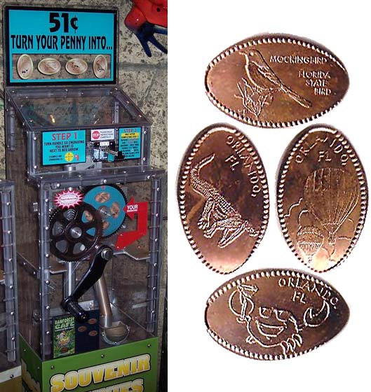 9/8/2018; All machines are still here, 3 penny and 1 quarter plus the new token machine. All in the same locations near the entrance from the parking lot..... rw |