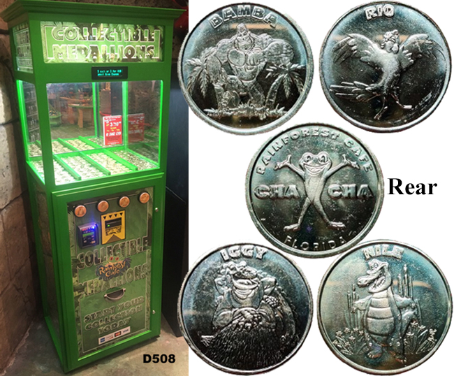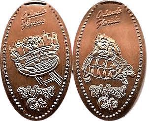 Retired from Machine 6: 1) Happy Frog in ride car, 2) Iguana on top of Turtle.