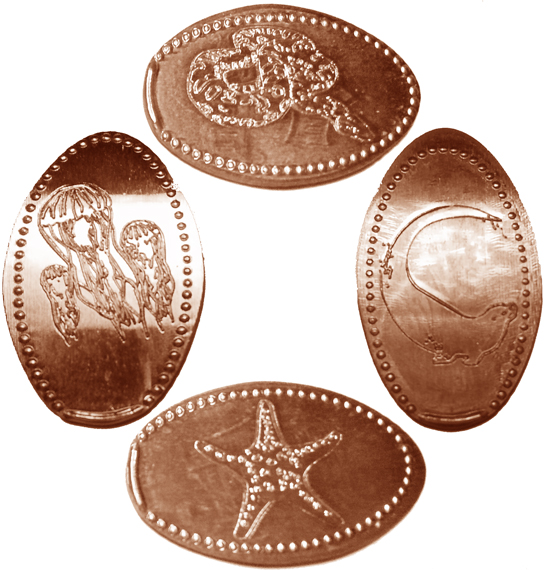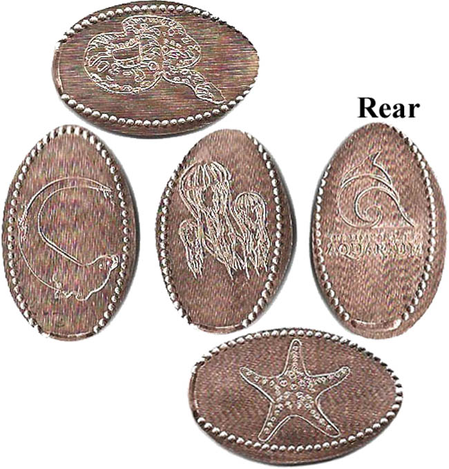 Retired 5: 1) A Snake, 2) 3 Jellyfish, 3) An Otter, 4) A Starfish - Rear- The Living Planet Aquarium', Seashell
