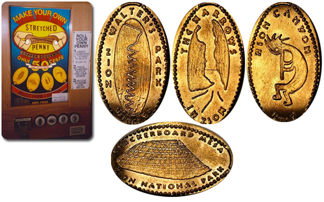 Two electric 4-die penny machines are located in front of the box office. The cost per penny is 50 cents per piece.