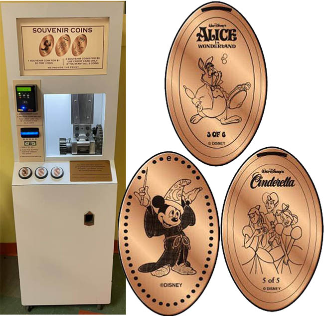 The Sorcerer Mickey penny was originally here but was moved to two other locations and then moved back here. It is now current in machine 1 here.