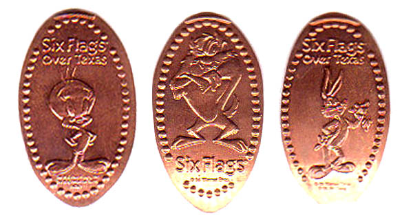Retired 3: 1) Bugs on coaster (V), 2) Marvin Martian on coaster (V), 3) Taz on coaster (V). all with Six Flags Over Texas